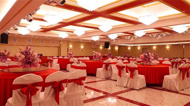 鉑金大廳—色彩濃烈,現(xiàn)代式裝修,面積560㎡,層高6米,開合大屏配合舞美燈光,唯美震撼,可承接30桌的中型宴會;12米長的可移動T臺收起后,就變成了可容納400人同時落座的大型多功能會議室。